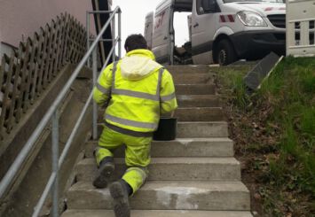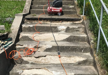 Treppenanlagen im Außenbereich sind ständig Witterungen und Streusalz ausgessetzt. Dadurch können im Laufe der Zeit schäden an Betontreppen enstehen.